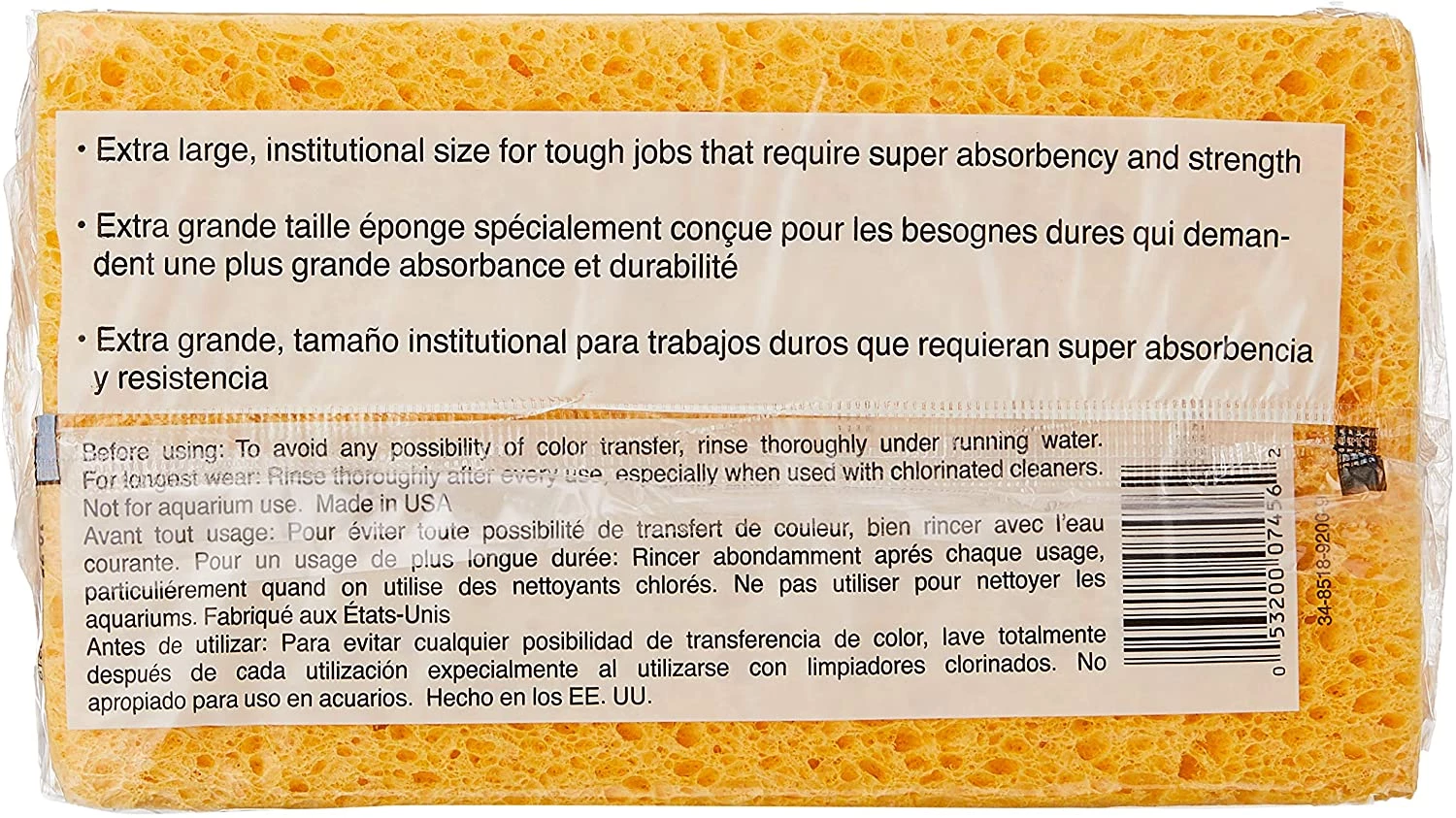 These 3M C41 Extra Large Cellulose Sponges are very absorbent, perfect for cleaning up the messiest of jobs, including large liquid spills. These cellulose sponges are ten times more absorbent than regular polyurethane sponges. These extra-large cellulose sponges are long-lasting, strong and extremely absorbent. These extra large sponges are ideal for cleaning the home or any workplace environment, especially where liquid spills are likely.