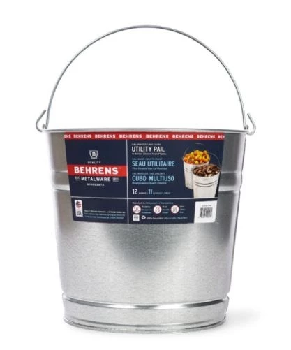 Built with the highest quality steel, Behrens’s 12 quartgalvanized pail is durable and made to last. The metal pail features an offsetbottom to keep the pail off the ground, a durable wire handle for easyportability, and deep swedging to add strength. Use this large, galvanized pailfor outdoor use or in your kitchen for storage and decor.