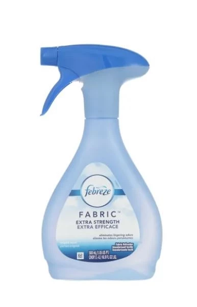 Febreze Fabric Extra Strength Fabric Refresher. Great for removing odor from fabrics such as clothing, upholstered furniture, drapes and car seats.