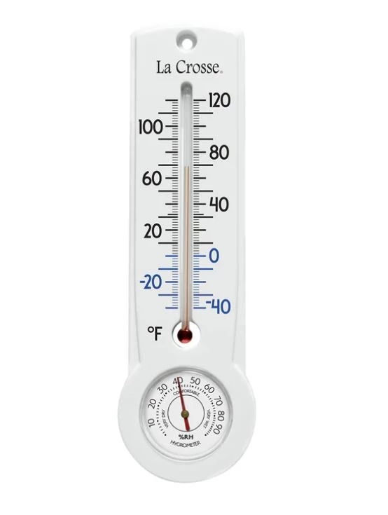 The 8.75″ Thermometer Hygrometer from La Crosse Technology is a durable, high impact, and fade-resistant thermometer that is bold and easy to read. It includes a secret key hider compartment on back to store spare key.