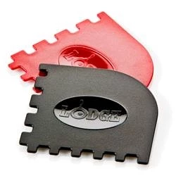 Durable Polycarbonate Grill Pan Scraper assists with clean-up duty after meals. Each scraper has two sets of “teeth” designed to fit any modern Lodge Grill Pan.