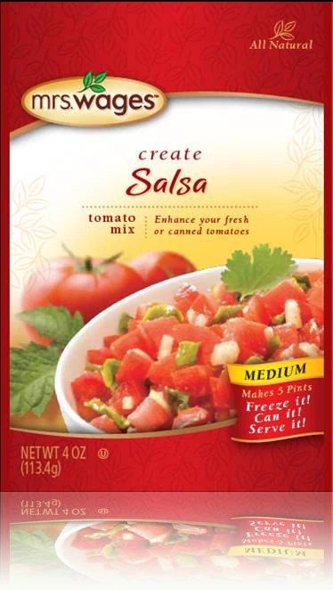 Top selling brand of the fast growing tomato sauce mix category of the home canning market. Use this mix, containing just the right spices with fresh or canned tomatoes for a zesty salsa you’re sure to make again and again. Makes 5 pints and is ready to eat 24 hours after preparation.