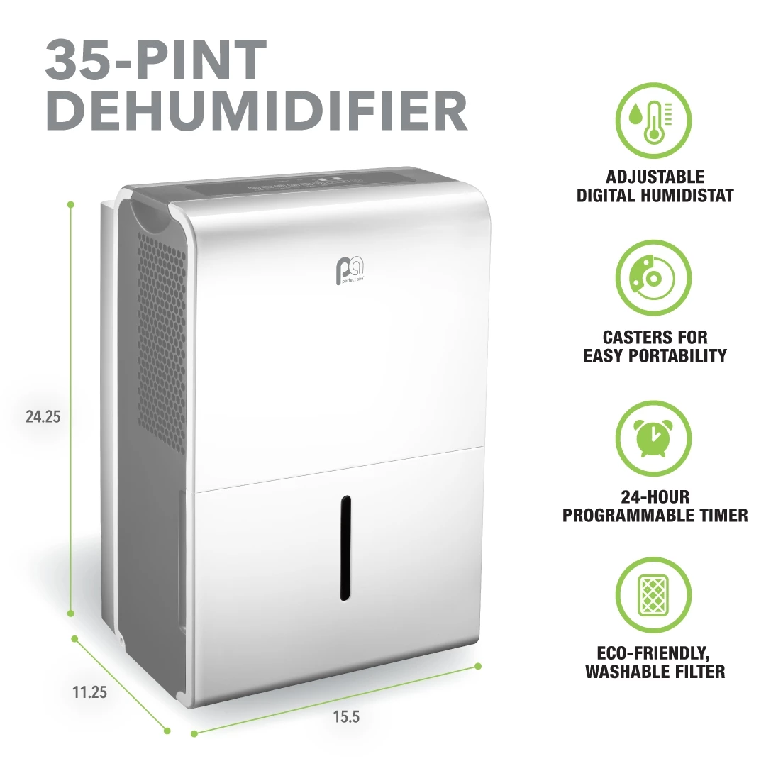 Removing 35-pints (4.375-gallons) of moisture daily, this ENERGY STAR dehumidifier efficiently dehumidifies medium, damp spaces up to 592 sq. ft.