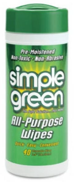 40 Count; Simple Green; All Purpose Pre-Moistened Towelettes; A Quick & Easy Way To Clean Indoor & Outdoor Household Surfaces; Non Toxic; Non Abrasive; Take Anywhere; Quick; Easy & Convenient.