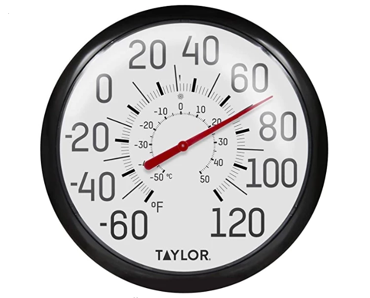 Ideal for gardeners and outdoors enthusiasts alike. An extra-large 13.25-inch display provides at-a-glance readings from far away, while the thermometer’s shatterproof lens is designed to withstand harsh elements without compromising visibility. Its tough, weather-resistant finish resists stains and will not fade. The dial thermometer is lightweight, mounts easily on any flat surface, and fits perfectly into any deck, patio, or garage layout. With both F° and C° scales, you’ll always have the most accurate readings at-hand in any temperature format.